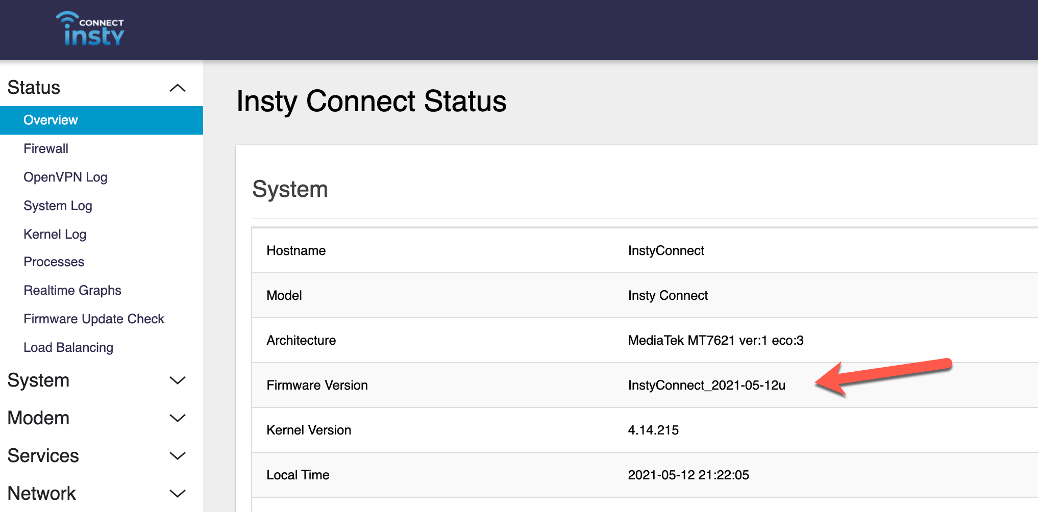 2021-07-28f: New Insty Connect v1.2 firmware. New modem device drivers for preparation of 5g modem as well as connection stability. Based on the latest OpenWRT 19.07.7