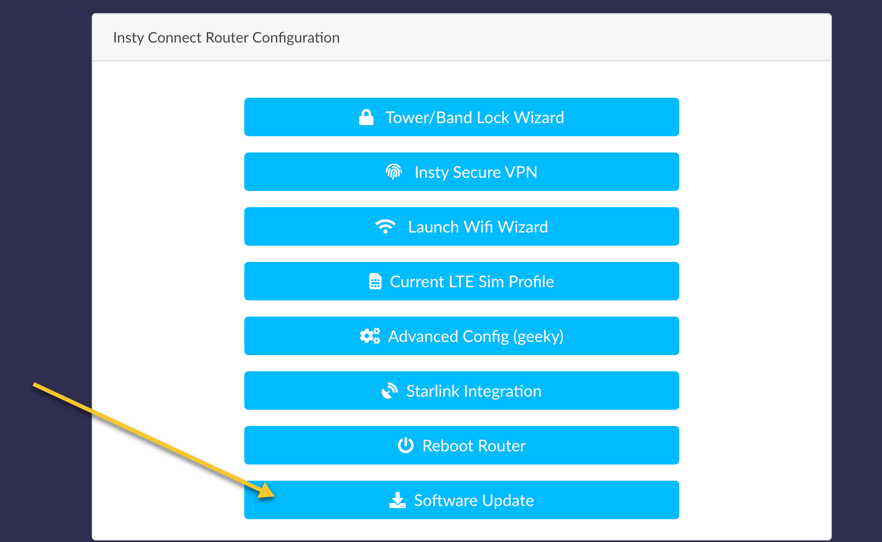 2.) Scroll down to the blue buttons and click on the 'Software Update' button:
