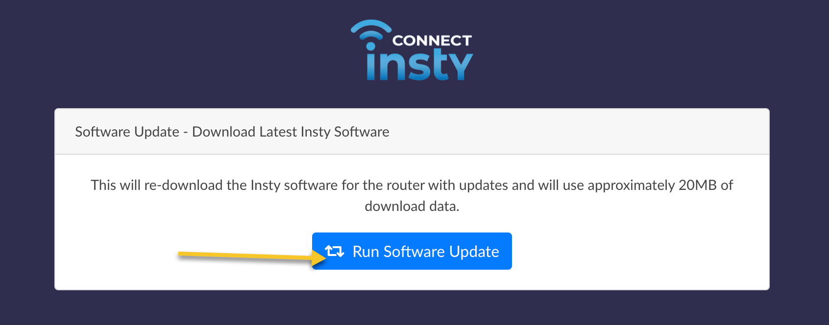 3.) You will need to login to the router, then click the 'Run Software Update' button