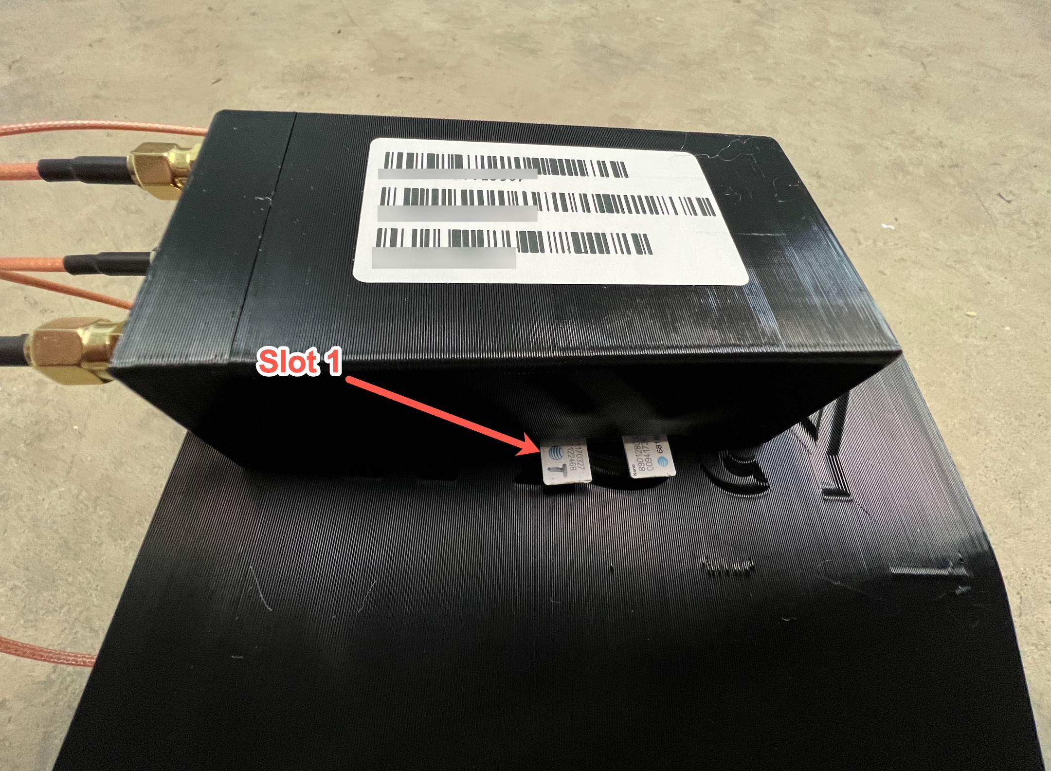 The SIM card is inserted with contacts facing down when viewing the modem from the side with the label. When inserting, make sure to push in until you hear the 'click'.