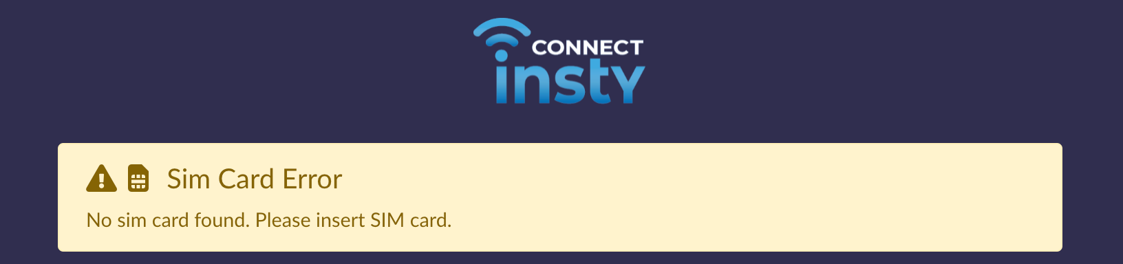 This message simply means the Insty Connect can not read your sim card. If you see this message, try the following: