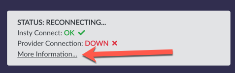 If you see this message, it means the Insty Connect can't sense an internet connection from the provider. A few reasons may be: