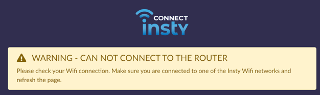 If you see this alert, verify that you're connected to the insty_connect_setup wifi and then make sure to FORGET all other wifi networks around you. This is VERY IMPORTANT as you need to stay connected to the router for the entirety of the Setup Wizard.