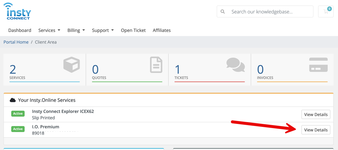 2.) Click the "View Details" button on your active Insty.Online Data plan
