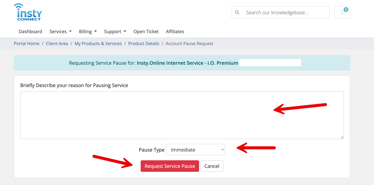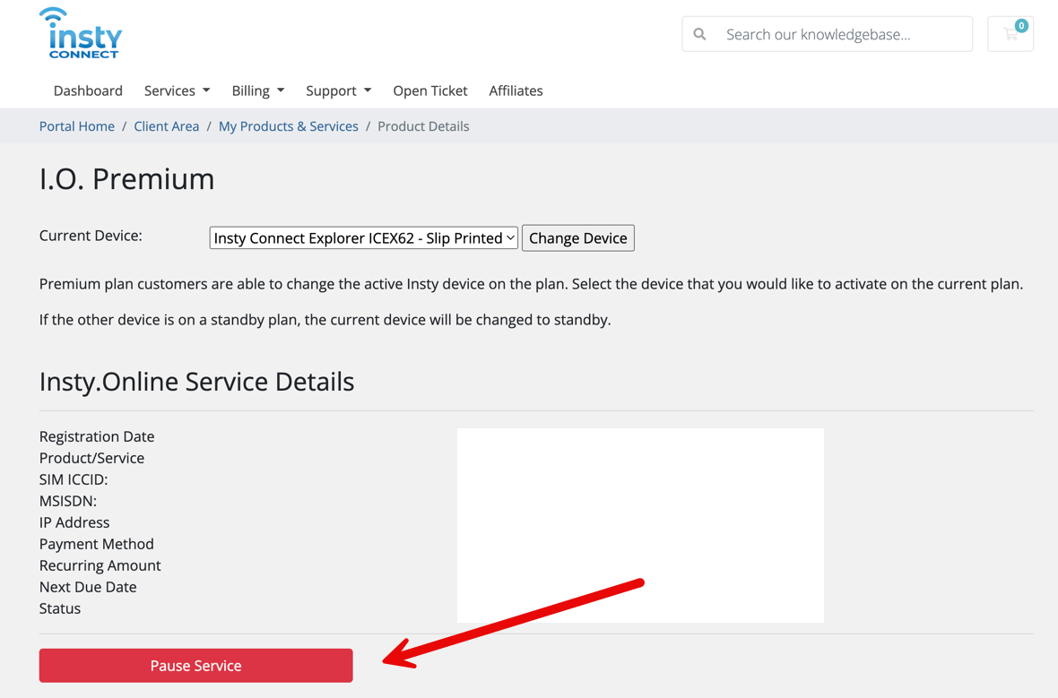 To pause your Insty.Online Service